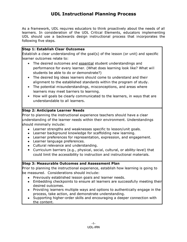 Udl Instructional Planning Process Udl Irn