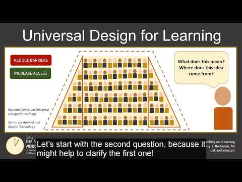 Universal Design for Learning, or UDL, is a set of learning design principles that increase access and reduce barriers for all types of learners. This video explains three UDL principles promoted by CAST: engagement (how students are motivated to learn), representation (how instructors communicate course concepts), and action and expression (how students demonstrate what they have learned).