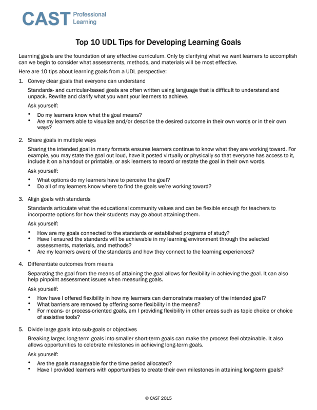 Cast Professional Learning Udl Top 10 Learning Goals