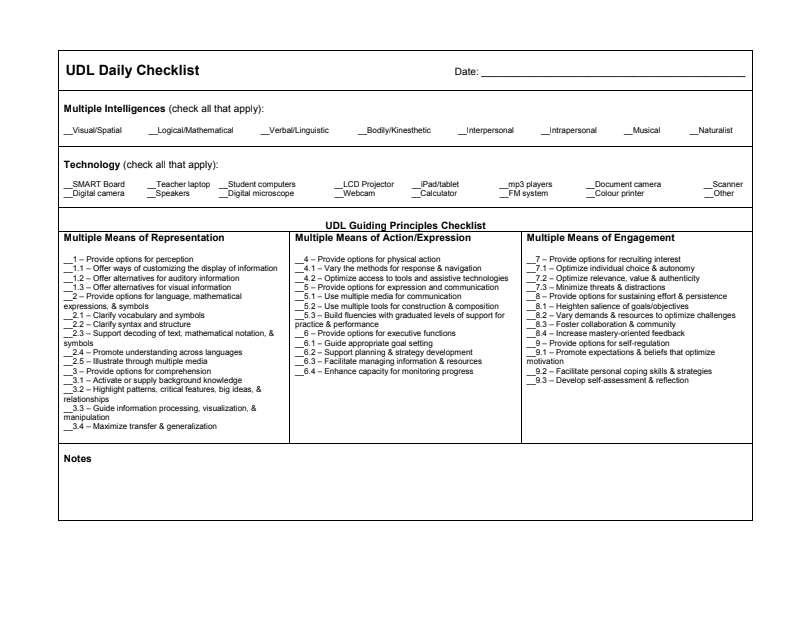 Udl Daily Checklist