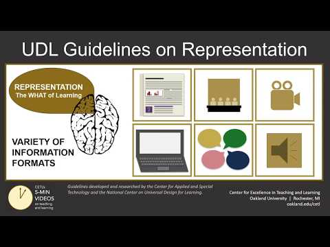 Universal Design for Learning, or UDL, is a set of learning design principles that increase access and reduce barriers for all types of learners. This video offers strategies for representation, one of the three UDL principles promoted by CAST. Representation considers how instructors communicate course concepts through a variety of class modes and media.